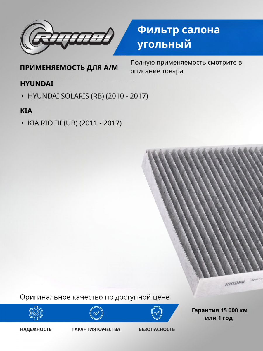 Салонный фильтр является важной деталью, обеспечивающей комфортное вождение. Он удерживает пыль, грязь и остальные мелкие частицы, которые могут попадать в салон, а также нейтрализует неприятные запахи благодаря активированному углю, содержащемуся в материале фильтра. Установка угольного фильтра гарантирует улучшение микроклимата внутри авто, что особенно важно при длительных поездках и в условиях городского трафика.Фильтр салона от TM Riginal - это надежное и доступное решение для очистки воздуха в автомобиле. Он обеспечивает качественную фильтрацию воздуха, удаляя вредные частицы и запахи. Установка фильтра проста и не требует специальных навыков. В ассортименте угольных фильтров салона ТM Riginal представлены различные модели, что позволяет выбрать наиболее подходящий вариант для каждого автомобиля. Кроме того, фильтры ТМ Riginal соответствуют всем требованиям и стандартам качества, а также могут быть использованы как замена оригинальным фильтрам без потери эффективности.
