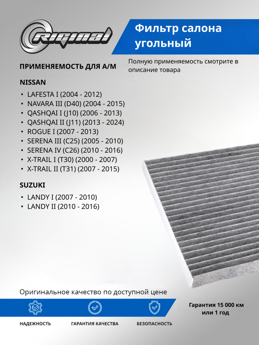 Салонный фильтр является важной деталью, обеспечивающей комфортное вождение. Он удерживает пыль, грязь и остальные мелкие частицы, которые могут попадать в салон, а также нейтрализует неприятные запахи благодаря активированному углю, содержащемуся в материале фильтра. Установка угольного фильтра гарантирует улучшение микроклимата внутри авто, что особенно важно при длительных поездках и в условиях городского трафика.Фильтр салона от TM Riginal - это надежное и доступное решение для очистки воздуха в автомобиле. Он обеспечивает качественную фильтрацию воздуха, удаляя вредные частицы и запахи. Установка фильтра проста и не требует специальных навыков. В ассортименте угольных фильтров салона ТM Riginal представлены различные модели, что позволяет выбрать наиболее подходящий вариант для каждого автомобиля. Кроме того, фильтры ТМ Riginal соответствуют всем требованиям и стандартам качества, а также могут быть использованы как замена оригинальным фильтрам без потери эффективности.