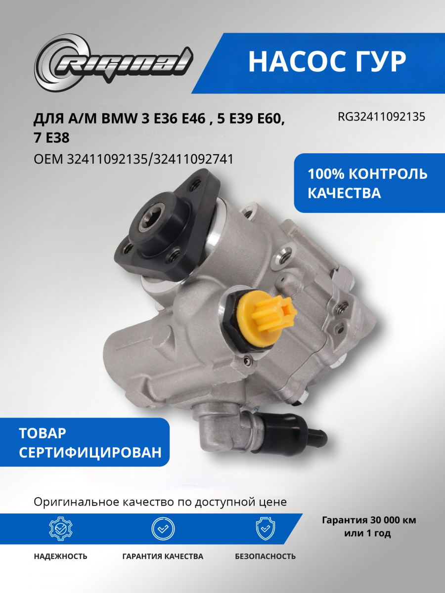 Главное отличие насосов ГУР ТМ RIGINAL – точность изготовления ротора и лопастей для создания нужного давления, использование регулятора давления для контроля, специфика присоединительных штуцеров под конкретную модель автомобиля, а также качество сборки, т.е.соответствие всем требуемым техническим характеристикам (подача, давление, скорость вращения),что определяет 100% эффективность и стабильность работы.