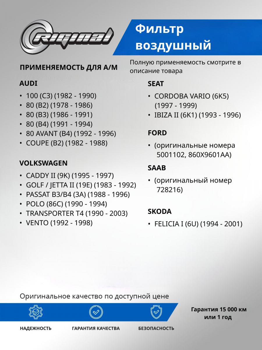 - Применяемость: для а/м AUDI 80/100/VW G2/G3/POLO