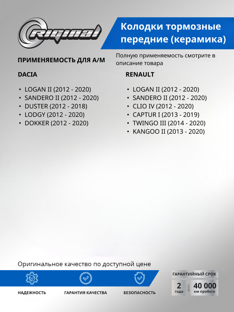 Керамические тормозные колодки — находка для водителей, которые ценят тишину, ровную педаль и чистые колёса. Они мягче взаимодействуют с чугунным диском, не пылят как полуметалл и дают предсказуемое замедление в городских пробках и на трассе. Cовременные керамические составы, применяемые при производстве, уверенно держат себя в рамках легальной скорости и при редких интенсивных торможениях. Эффективности хватает с запасом. Преимущества тормозных колодок ТМ RIGINAL: эффективность торможения, повышенная коррозионная стойкость, отсутствие скрипа. Керамические тормозные колодки ТМ Riginal ценятся в первую очередь за их долгий срок службы, а еще за стабильную работу на протяжении всего срока эксплуатации. Продукция сертифицирована.
