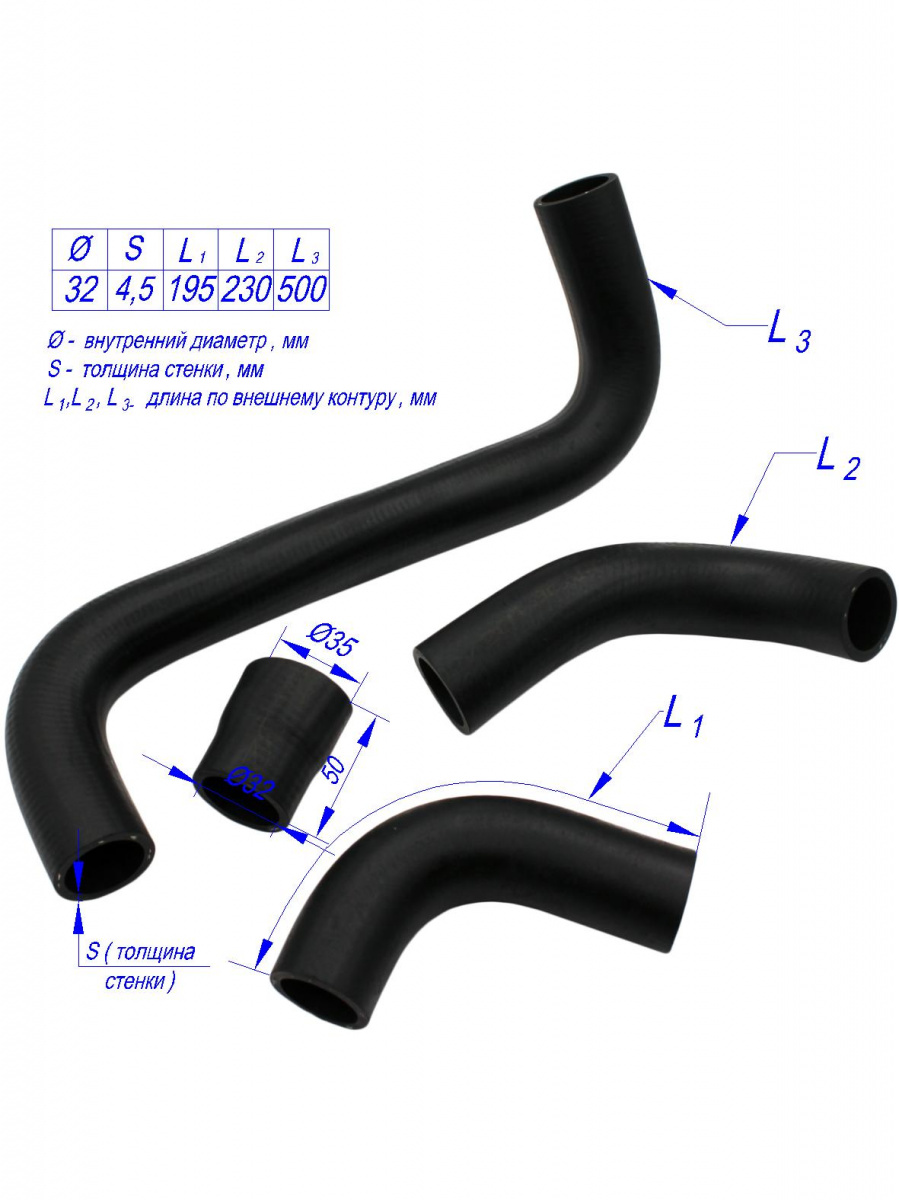 Патрубки изготовлены из высококачественной маслобензостойкой резины, сохраняющей требуемые характеристики работоспособности в диапазоне температур от -60 до +105 градусов. Точность формы патрубков гарантирует герметичность соединений, оплеточное усиление вискозной/полиэстровой нитью обеспечивает максимальное рабочее давление до 0,4МПа, высокую гибкость и хорошее поглощение вибраций.