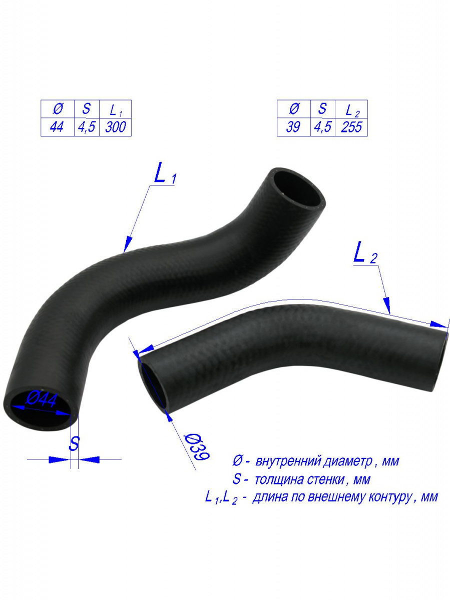 Патрубки изготовлены из высококачественной маслобензостойкой резины, сохраняющей требуемые характеристики работоспособности в диапазоне температур от -60 до +105 градусов. Точность формы патрубков гарантирует герметичность соединений, оплеточное усиление вискозной/полиэстровой нитью обеспечивает максимальное рабочее давление до 0,4МПа, высокую гибкость и хорошее поглощение вибраций.