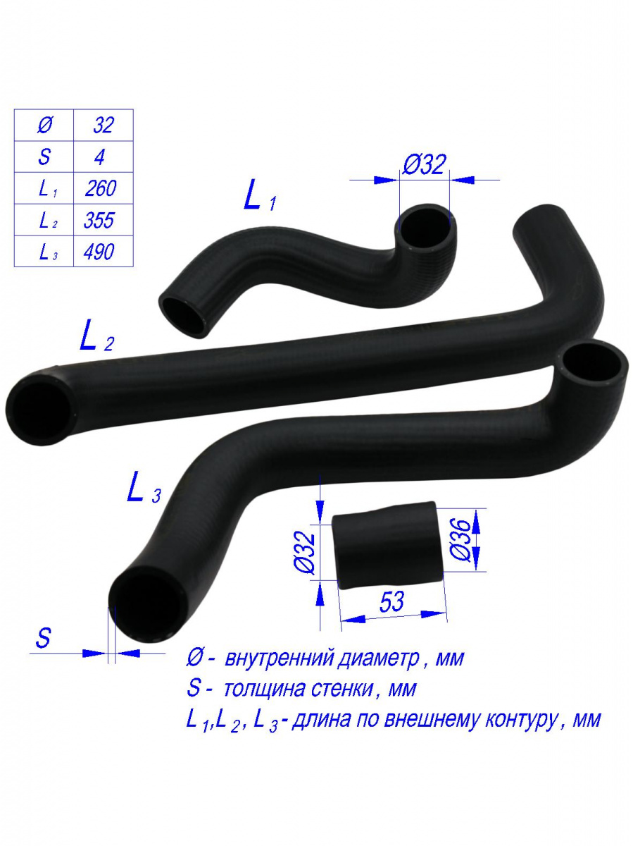 Патрубки изготовлены из высококачественной маслобензостойкой резины, сохраняющей требуемые характеристики работоспособности в диапазоне температур от -60 до +105 градусов. Точность формы патрубков гарантирует герметичность соединений, оплеточное усиление вискозной/полиэстровой нитью обеспечивает максимальное рабочее давление до 0,4МПа, высокую гибкость и хорошее поглощение вибраций.