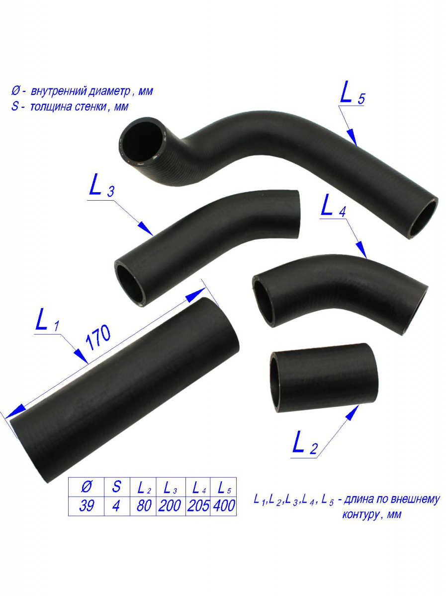 Патрубки изготовлены из высококачественной маслобензостойкой резины, сохраняющей требуемые характеристики работоспособности в диапазоне температур от -60 до +105 градусов. Точность формы патрубков гарантирует герметичность соединений, оплеточное усиление вискозной/полиэстровой нитью обеспечивает максимальное рабочее давление до 0,4МПа, высокую гибкость и хорошее поглощение вибраций.
