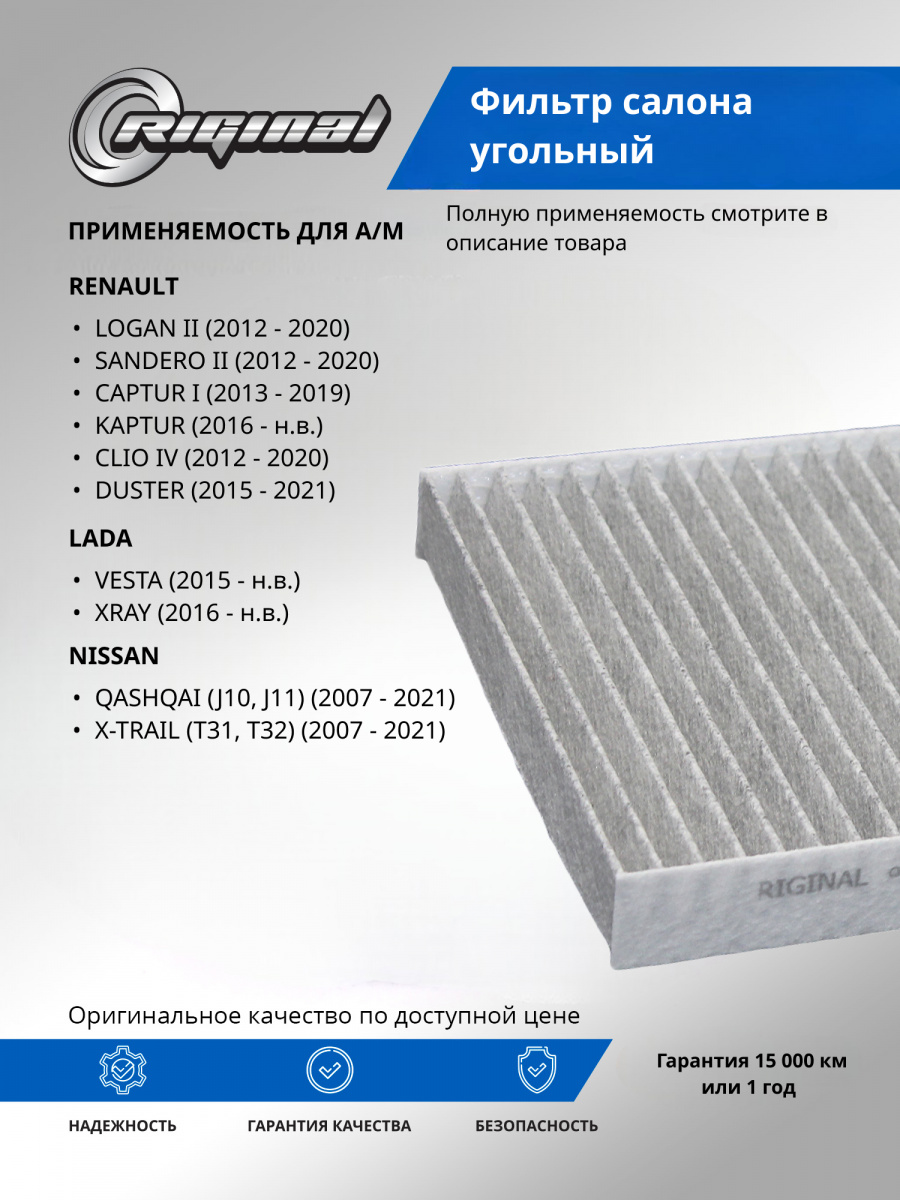 Салонный фильтр является важной деталью, обеспечивающей комфортное вождение. Он удерживает пыль, грязь и остальные мелкие частицы, которые могут попадать в салон, а также нейтрализует неприятные запахи благодаря активированному углю, содержащемуся в материале фильтра. Установка угольного фильтра гарантирует улучшение микроклимата внутри авто, что особенно важно при длительных поездках и в условиях городского трафика.Фильтр салона от TM Riginal - это надежное и доступное решение для очистки воздуха в автомобиле. Он обеспечивает качественную фильтрацию воздуха, удаляя вредные частицы и запахи. Установка фильтра проста и не требует специальных навыков. В ассортименте угольных фильтров салона ТM Riginal представлены различные модели, что позволяет выбрать наиболее подходящий вариант для каждого автомобиля. Кроме того, фильтры ТМ Riginal соответствуют всем требованиям и стандартам качества, а также могут быть использованы как замена оригинальным фильтрам без потери эффективности.