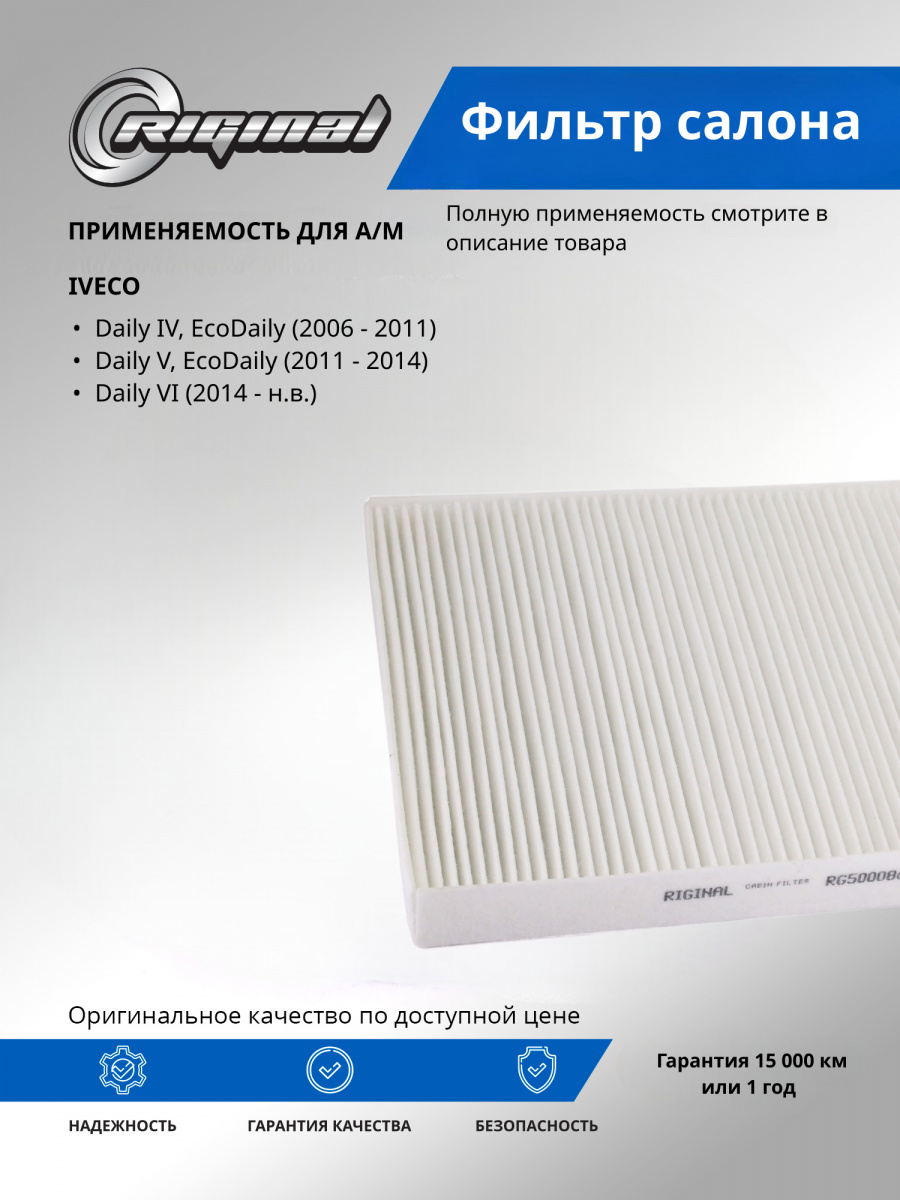 Фильтр салона от TM Riginal — это надежное и доступное решение для очистки воздуха в автомобиле. Он обеспечивает качественную фильтрацию воздуха, удаляя вредные частицы и запахи. Салонные фильтры ТМ Riginal отвечают самым высоким требованиям к пропускной способности благодаря использованию высококачественного фильтровального материала. Изготавливаются с учетом оригинальных геометрических параметров. Установка фильтра проста и не требует специальных навыков. В ассортименте Riginal представлены различные модели фильтров, что позволяет выбрать наиболее подходящий вариант для каждого автомобиля. Кроме того, фильтры ТМ Riginal соответствуют всем требованиям и стандартам качества, а также могут быть использованы как замена оригинальным фильтрам без потери эффективности.
