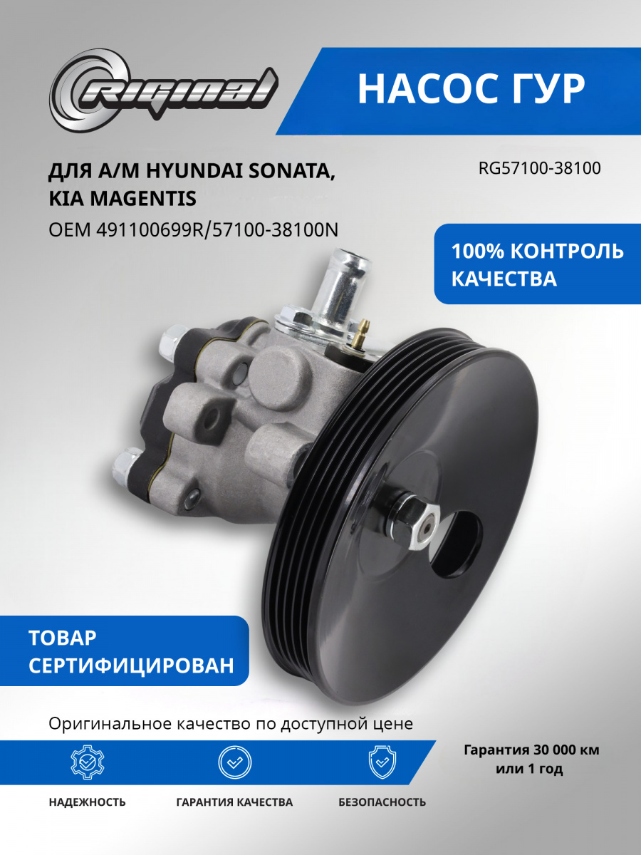 Главное отличие насосов ГУР ТМ RIGINAL – точность изготовления ротора и лопастей для создания нужного давления, использование регулятора давления для контроля, специфика присоединительных штуцеров под конкретную модель автомобиля, а также качество сборки, т.е.соответствие всем требуемым техническим характеристикам (подача, давление, скорость вращения),что определяет 100% эффективность и стабильность работы.
