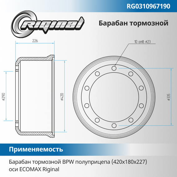 Барабан тормозной BPW полуприцепа (420х180х227) оси ECOMAX